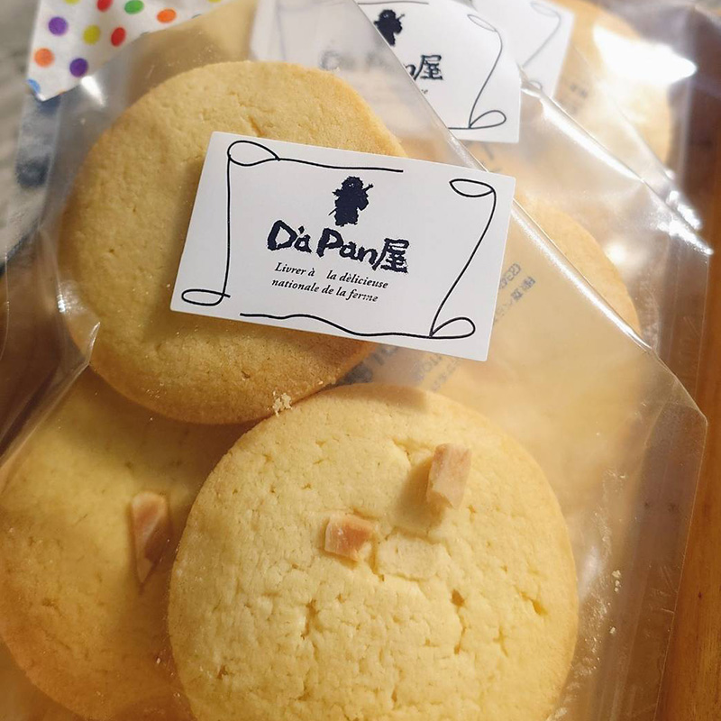 町内産のはなこ(とうもろこしの粉末)を使用した口溶けの良いバターサブレ。