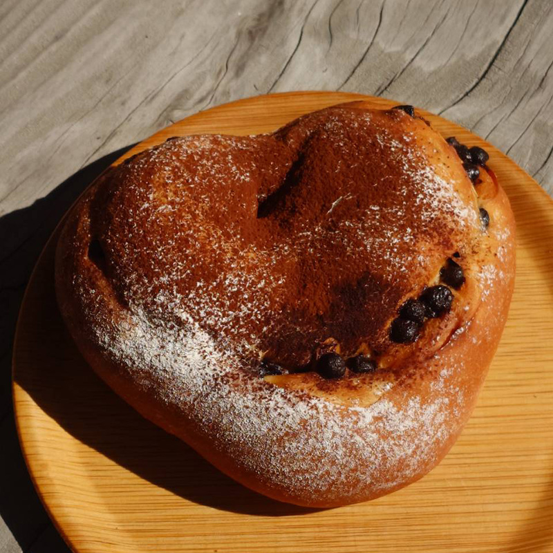 ハート型に焼き上げたチョコチップたっぷりのパン。