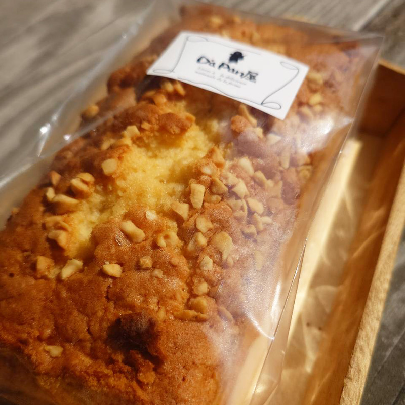 アーモンド、くるみ、ピーナッツが入ったパウンドケーキ。